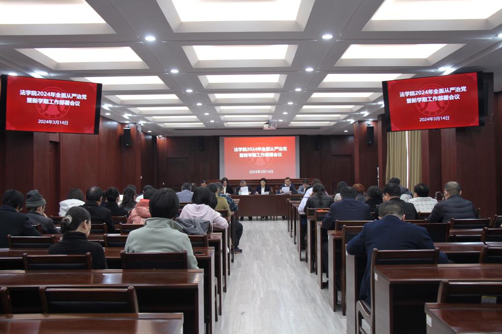 在燕山校区模拟法庭召开2024年全面从严治党暨新学期工作部署会议。学院领导班子及全体教职工参加,学院党委书记危红主持会议。