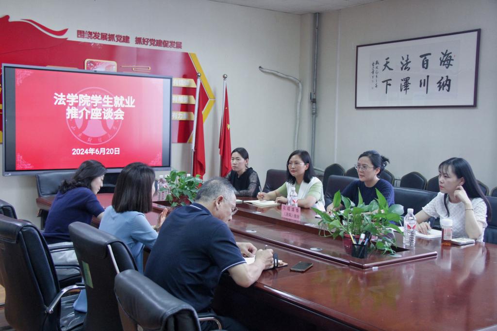对三家律所代表的到来表示热烈欢迎,希望大家畅所欲言用人需求和对学校的培养要求,为学院对离校未就业学生的就业指导和在校生的专业培养提出宝贵建议。