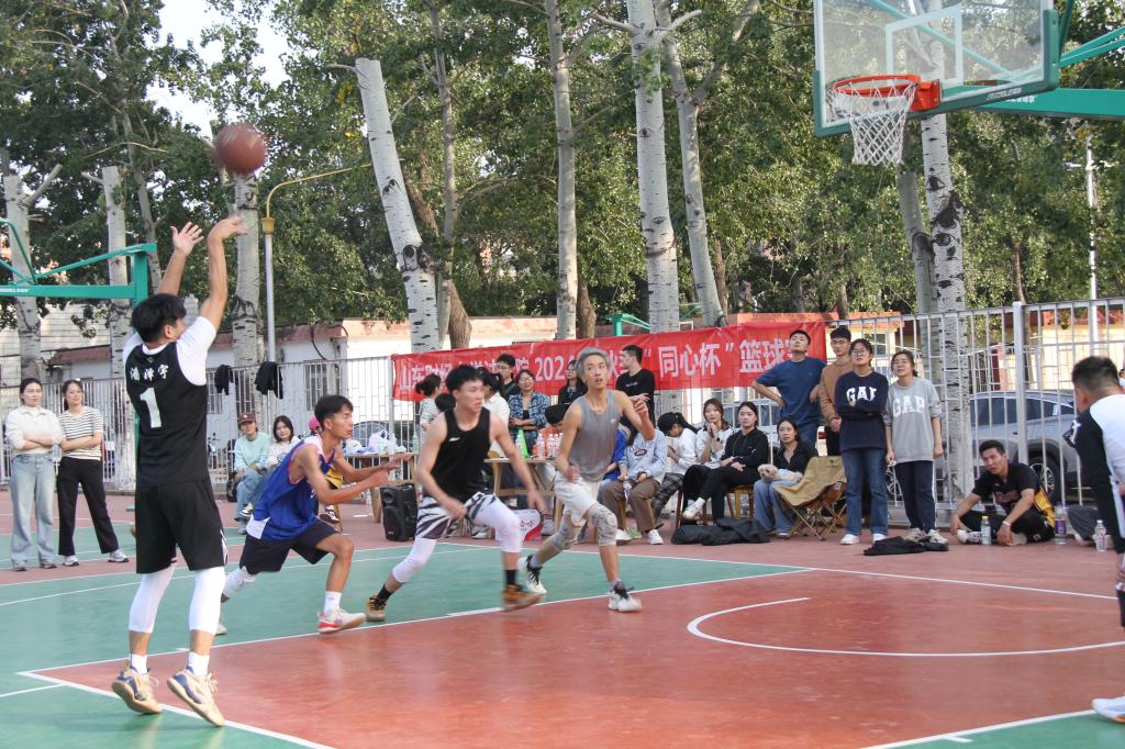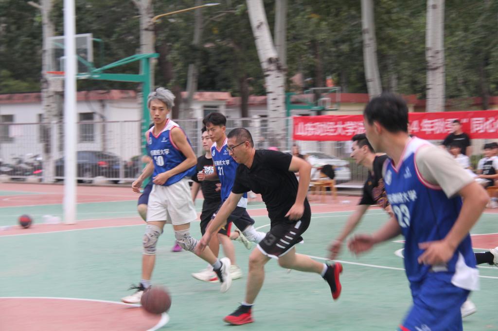 最后是本科生与研究生的友谊表演赛,2022级本科辅导员殷浩松带领选手们在赛场上飞驰,无论是领先时的进攻,还是落后时的防守,两队都以沉着的心态面对每一个回合,他们以顽强拼搏的勇气和永不言败的志气,为本次篮球比赛画上了圆满的句号。