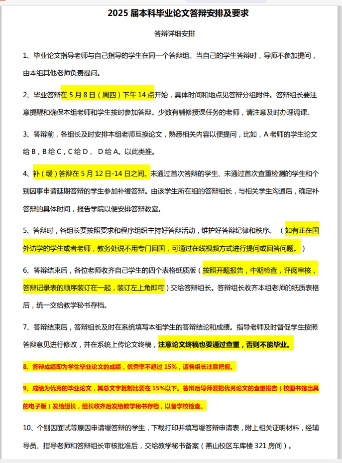 2025届本科毕业论文答辩安排及组长职责