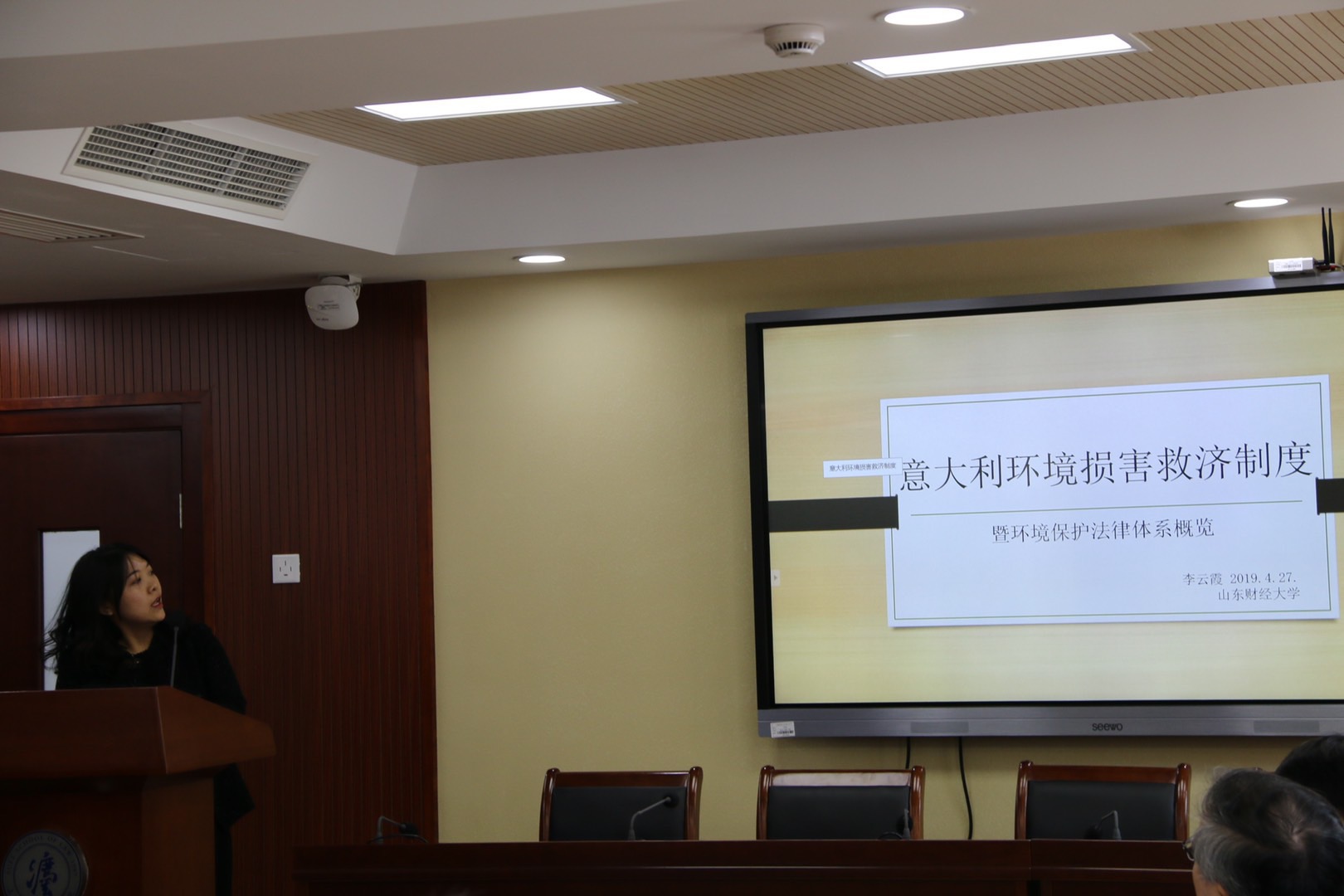 教师李云霞博士参加此次会议,并以《意大利环境损害救济制度暨环境保护法律体系概览》为主旨做主题报告。李老师在报告中首先以宏观的、历史的视角对意大利环保法律体系的总体架构、发展历程做了概括性介绍,其次重点介绍了意大利环境损害救济制度的主要内容,包括其适用范围、环境救济措施和环境损害赔偿责任等方面,并于会后与与会专家进行了深入的探讨交流。