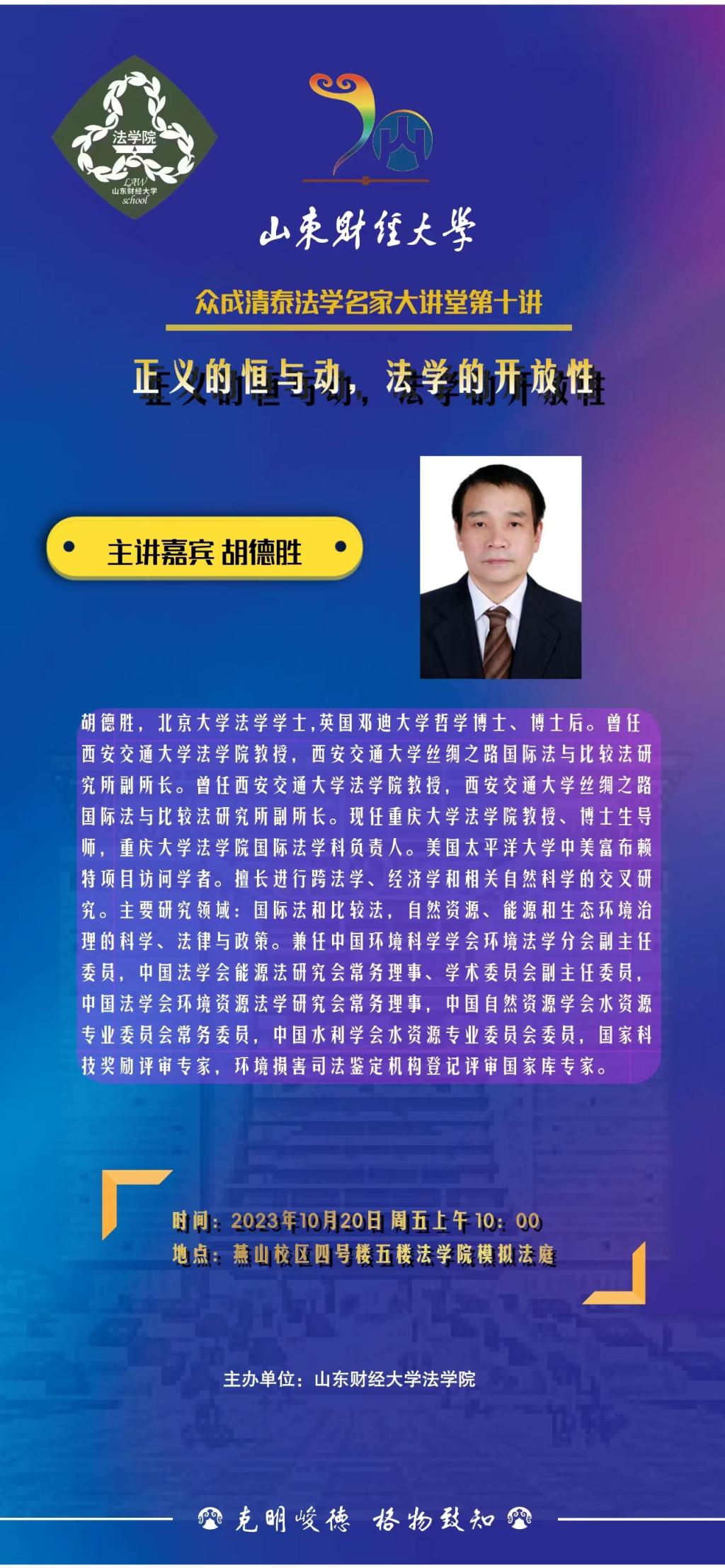 山东财经大学—众成清泰法学名家大讲堂第十讲 正义的恒与动,法学的开放性