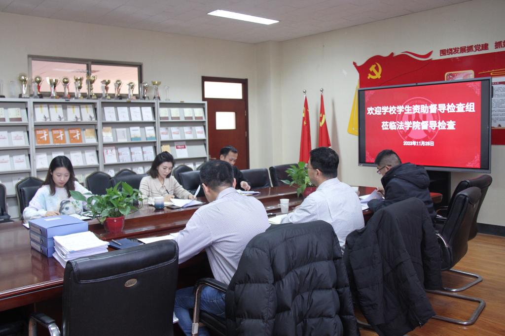的资助工作基本情况、制度建设、评选程序、发放过程、监督力度、工作管理体系及存在的不足等方面进行了汇报。随后,检查组查阅了学院资助工作相关档案资料。