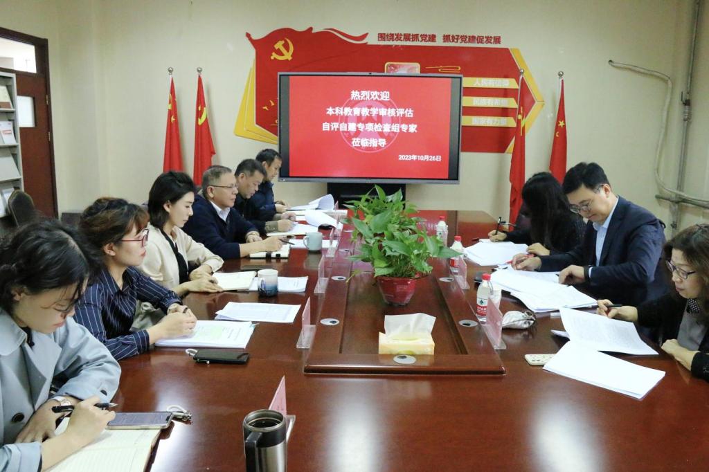 在审核评估第一阶段的总体工作进展。沙林斌就本科教育教学审核评估工作中学生工作和学院立德树人开展情况同检查组进行了沟通交流。王莉莉分别对学院审核评估第一阶段工作计划、采取措施、工作成效、存在问题进行了介绍,尤其就专业方案、人才培养、教师队伍建设等问题和与会专家进行了详细汇报。最后,赵信会进行总结发言,他指出,要切实加强审核评估工作的统一领导,学院要上下一心、通力合作,要各司其职、密切配合,要明确方向、细化工作思路、狠抓具体落实,确保高质量完成各项工作。