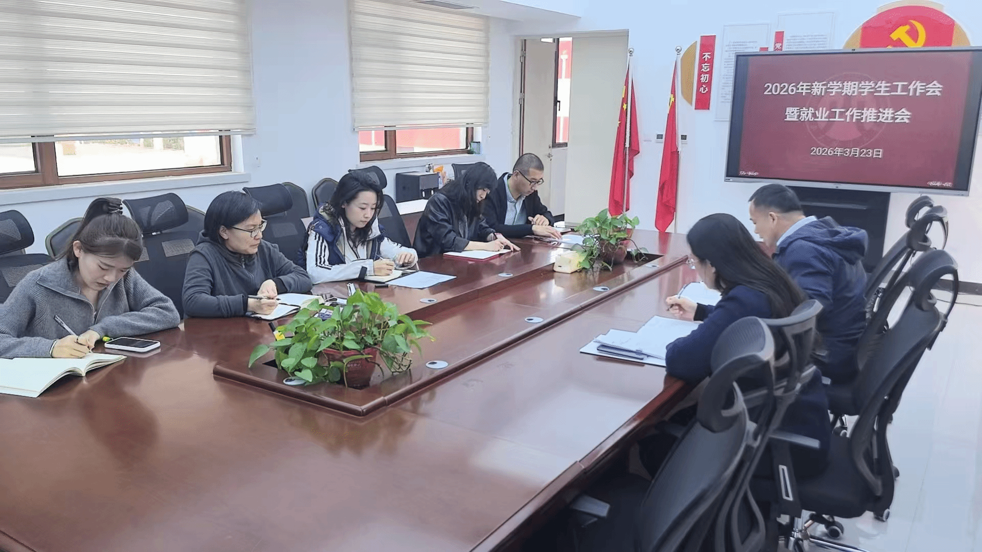 召开2026年新学期学生工作暨就业工作推进会议,学院党委副书记陶晓华、沙林斌和全体辅导员参加。