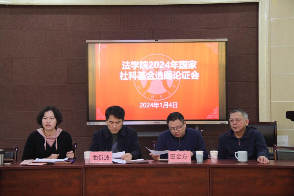 特邀山东财经大学统计学院副院长田金方教授、公共管理学院副院长曲衍波教授做2024年度国家社科基金申报辅导。院长赵信会、教师代表赵建良、王华、吕欣、肖夏、董文、赵景顺、刘岩、杨姿等参加会议。副院长纪建文主持会议。