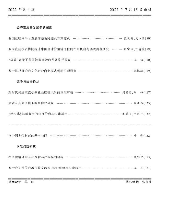 武中哲教授在《理论学刊》2022年第4期上发表了题为“社区微治理的基层逻辑与社区福利建构”的论文。《理论学刊》是中共山东省委党校主办的哲学社会科学综合性学术理论刊物,CSSCI来源期刊,全国中文核心期刊,中国人文社会科学核心期刊,RCCSE中国核心学术期刊,中国社会科学期刊精品数据库入选期刊,华东地区优秀期刊,山东省十佳期刊,山东省优秀期刊,面向国内外公开发行。