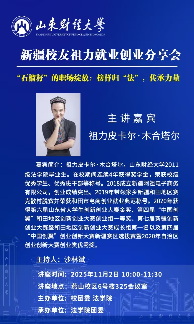 石榴籽”的职场绽放:榜样归“法”,传承力量 ----暨新疆校友祖力就业创业分享会