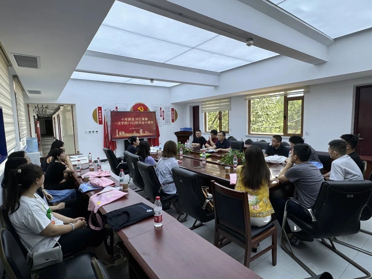 会议室举行了“拾光”主题班会,分享了毕业十年来各自的发展经历和心得体会,表达了对母校和恩师的感激之情,还观看了《十年》回忆短片,当熟悉的画面在屏幕上闪过,十年前的青春时光如潮水般涌入脑海。