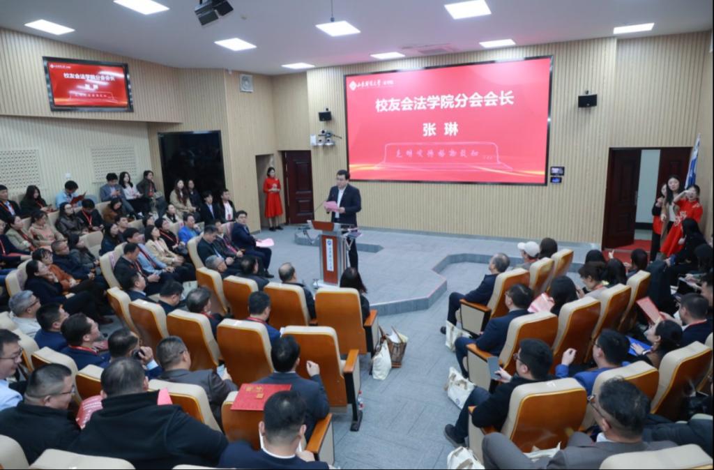 全体师生对校友们的“回家”表示热烈欢迎。他简要回顾了学院的发展历程,强调学院始终秉持“法安天下,德润人心”的院训,立足法学、融合财经、服务社会,致力于培养通法理、懂经济的复合型法治人才。他表示,校友分会的成立意义重大,希望广大校友继续关心支持母校建设,充分发挥桥梁纽带作用,在各自岗位上再创佳绩,为母校增光添彩。