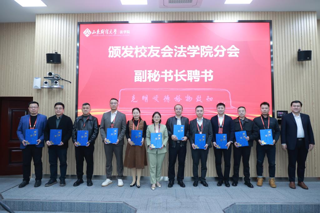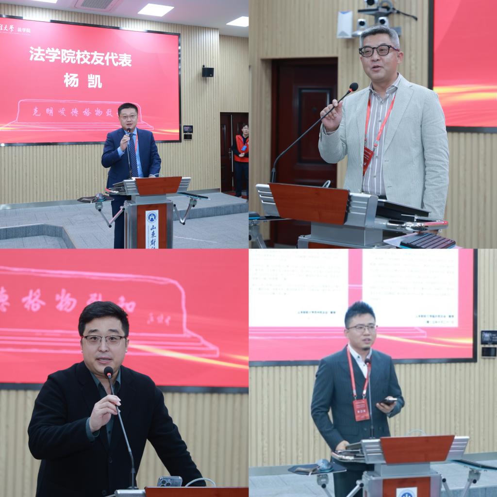 校友分会负责人及就业导师代表颁发了聘书。校友杨凯、李殿涛、孙京祥依次发言,他们深情回忆了在母校的求学岁月,表达了对恩师的感激和对母校的祝福,并表示将积极支持校友会工作,为母校和学院的发展贡献力量。大会还宣读了上海校友会、苏州校友会、临沂校友会的贺信,并播放了来自全国各地校友的祝福视频。