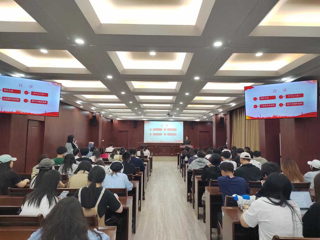 优秀退伍学姐赵文秀进行征兵宣讲,响应国家号召,鼓励大学生征兵。足球博彩讨论中心